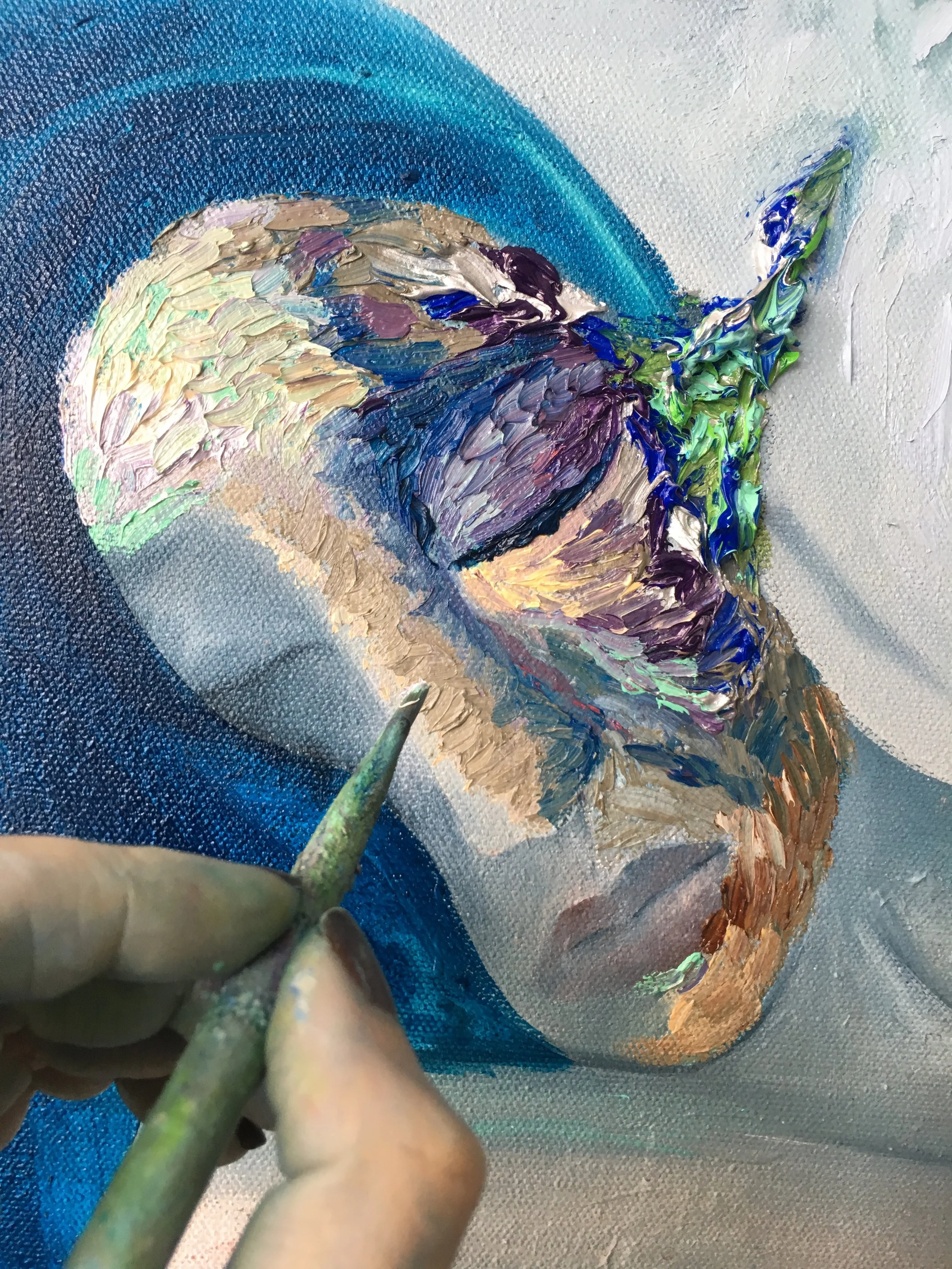 My paintings, installations, and time-based works attempt to dissolve the sovereignty of the human body and open it back into the ecological continuum. My practice unsettles the boundary between inner and outer landscapes, tracing the porous edges where memory, psyche, and ecology converge. Through oil on canvas, watercolor, textiles, and experimental film, I explore how intimacy, grief, and kinship reconfigure our relationship to more-than-human worlds, proposing tenderness and wonder as radical forms of survival.